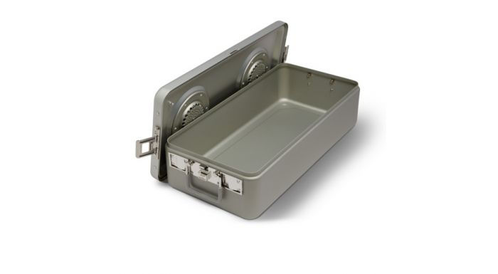 The Steriset® Full-Size Flat-Bottom Container with Stainless-Steel Lid maintains the integrity of the sterilisation of medical equipment by protecting from dust, excess moisture and other external agents. Key technical features (and associated benefits) that help maintain the sterility of the container include: Stainless-steel double-lid protection: For a higher level of protection of sterilised instruments from corrosion, and a more rigid design Stainless-steel valve: This valve is pressure-activated to open automatically during the steam pre-vacuum sterilisation cycle. It remains closed after sterilisation, creating an impermeable barrier that keeps contents sterile; eliminates the use of disposable paper filters Tamper-evident security: Having the heat-activated Thermo-Loc® Intelligent Locking System, the lid can be locked in place during the sterilisation cycle. This ensures the container remains sealed until healthcare staff open it in the operating theatre and is tamper-evident; plastic locks are not required. Based on these benefits and features, our sterilisation solution also facilitates time and cost saving, and waste reduction. In addition, up to three containers can be stacked in the steriliser because of its space-saving design. Based on your sterilisation needs, this container is available in different dimensions: 59.6 x 27.5 x 12.0 cm 59.6 x27.5 x 14.0 cm 59.6 x 27.5 x 16.0 cm 59.6 x 27.5 x 21.0 cm 59.6 x 27.5 x 27.0 cm The Steriset® Full-Size Flat-Bottom Container with Stainless-Steel Lid is part of the sterilisation product range, which features a number of accessories, including silicon mats, trays and indicator labelling.